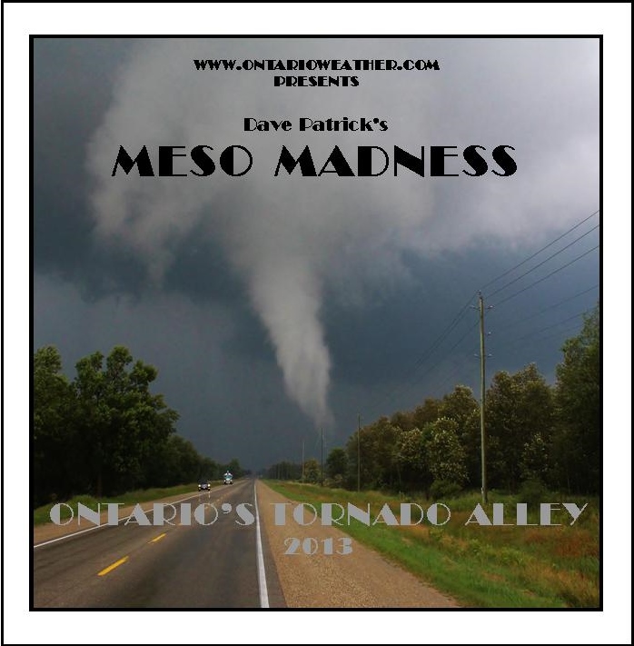 Storm Chasing DVD Release I am happy to announce the release of my 1st full-length DVD release with Meso Madness - Ontario's Tornado Alley 2013 Christmas Special FREE SHIPPING NORTH AMERICA WIDE AND 4x6 PRINT This 1 hr 27 min movie contains only footage shot in Ontario and includes tornadoes, damaging winds, large hail and amazing storm structures and time lapses. Also included is a brief severe storm primer that gives some detailed background into tornado statistics in Ontario and where they are most likely to occur and when. DVD Trailer DVD Cover Art