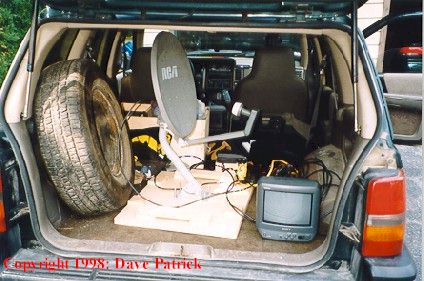 DSS Satellite with 9" Sony Trinitron hooked to power inverter. (39k)